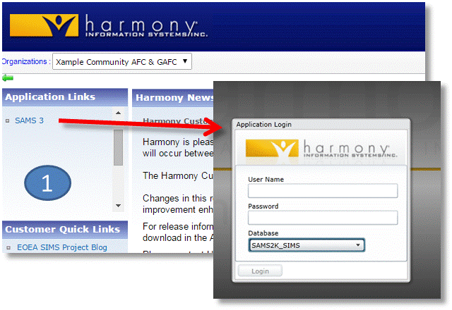 you can login to the Harmony Portal, and see an Application link for SAMS 3 (not SAMS 3 – Field Test)