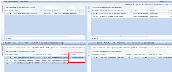 2. On a regular basis, AGD Support will look for any Activity & Referral records in SAMS with this Status and Reason, and complete the merges as needed.