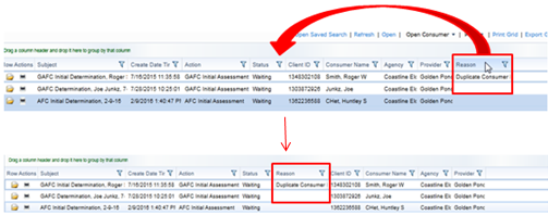 4. Click and hold on the column header for Reason, and drag it to the left so it will be in your view when the widget is back in its smaller size. It makes sense to move it next to the status column.